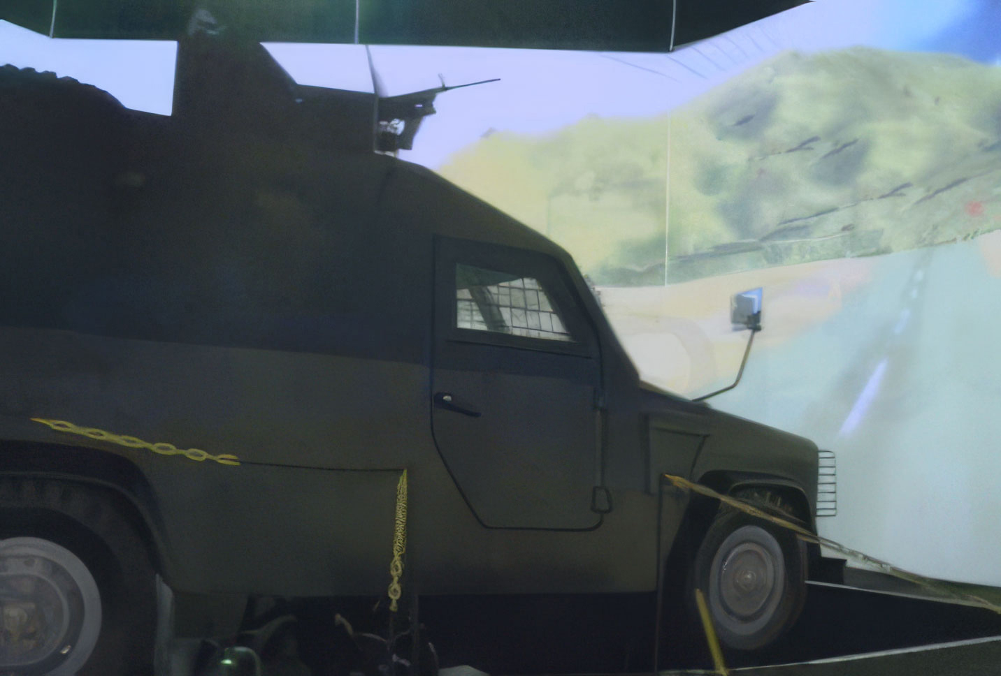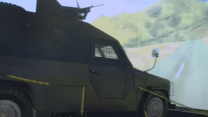 Due to the realistically modeled vehicle hardware, trainees feel life-like movements, rotations, and impacts of the vehicle. Repulsion enhanced, laser focused weapon hardware provides a realistic shooting experience for the trainees. Giant simulation screens created by multiple projectors and realistic sounds make the trainees feel like they are in a real battle environment.